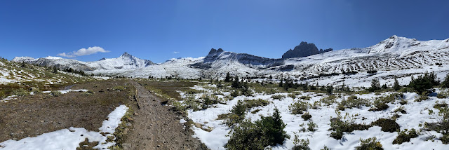 Two weeks later when we did the hike again it was nearly autumn. The weather was milder, but not too cold. We still experienced a little snow, though. Actually, we haven't done a hike in the Rocky Mountains where it hasn't snowed a little.